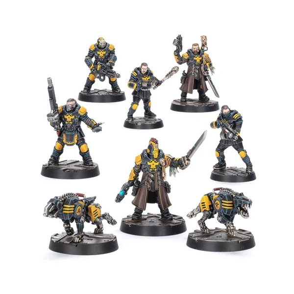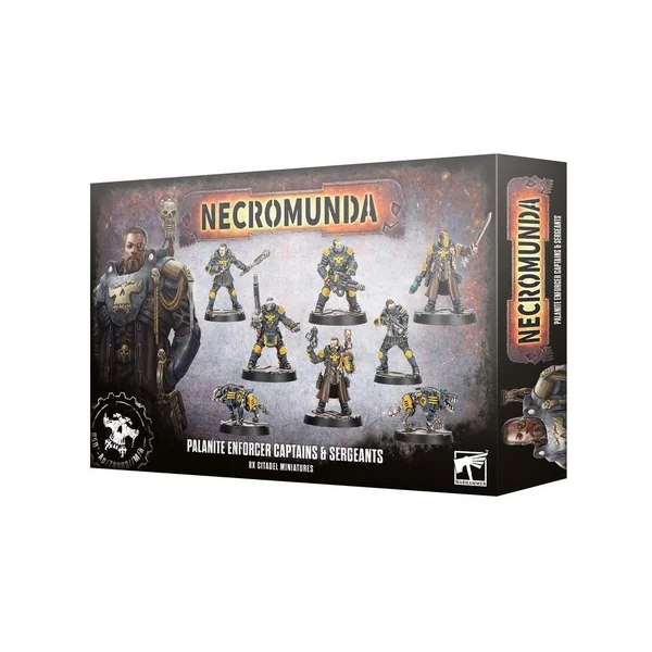 Ce kit en plastique permet d’assembler deux Palanite Enforcer Captains, deux Palanite Enforcer Sergeants, deux Palanite Enforcer Subjugator Sergeants et deux Hardcase Cyber-mastiffs pour vos gangs de Palanite Enforcers dans les parties de Necromunda. Dotés des meilleures armes de leur caserne et du meilleur équipement disponible, ils vous permettront de prendre l’avantage contre tous ceux que vous jugerez être des criminels.