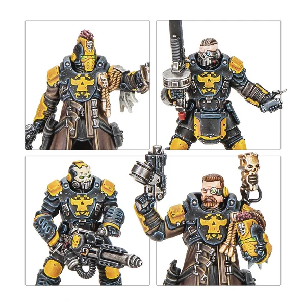 Ce kit regorge d’options pour vous permettre de personnaliser vos figurines. Les Palanite Enforcer Sergeants peuvent chacun être armés d’un pistolet-mitrailleur et d’une masse énergétique, ou d’un bolter Enforcer avec pointeur laser et combi-lance-grenades en option. Ils disposent également d’un choix de trois modèles de tête et de deux cols. Les Subjugator Sergeants peuvent être armés de projecteurs chimiques modèle Repulsion ou d’une mitrailleuse, avec un bio-scanner, une grenade ou un chargeur dans la main gauche. Ils disposent également de deux têtes et deux cols différents. Les Palanite Enforcer Captains peuvent chacun être armés d’un pistolet bolter ou d’un pistolet à plasma dans une main, et tenir un casque, une épée énergétique dans son fourreau ou une épée énergétique tirée dans l’autre main. Ils disposent également d’un choix de deux têtes et de deux cols. Les Hardcase Cyber-mastiffs disposent chacun d’un choix de deux têtes différentes, ce qui vous offre davantage d’options de personnalisation pour votre équipe traquant les criminels de Necromunda.