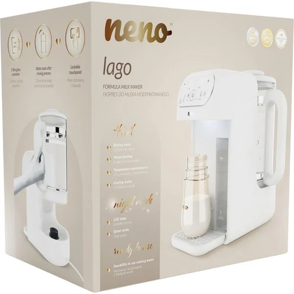 Neno Lago est un appareil automatique pour la préparation de lait infantile, qui fait gagner du temps et simplifie l’alimentation – surtout pendant les heures nocturnes. Il garantit la bonne température de l’eau, un dosage précis et un maximum de confort à chaque utilisation.