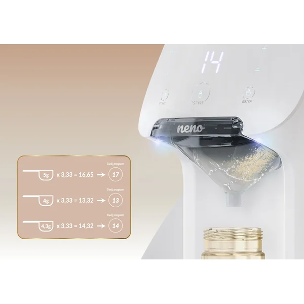 Neno Primavera est un appareil de préparation de lait infantile qui vous fera gagner un temps précieux et vous offrira un maximum de confort à chaque repas. Compatible avec la plupart des biberons et des préparations de lait modifiées, il chauffe rapidement l’eau à la température idéale jusqu’à 70°C. Avec un panneau tactile intuitif et des capteurs avancés, son utilisation quotidienne est encore plus simple et confortable.