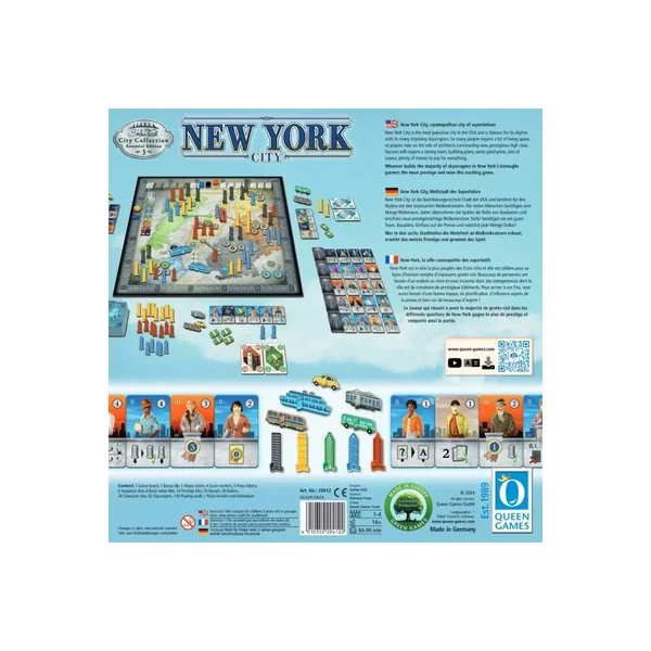 New York City Version Essentielle est un jeu expert édité par Queen Games, jouable de 1 à 4 joueurs, dès 14 ans, pour des parties de 75 min environ.