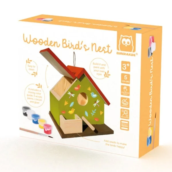 Cet ensemble contient tout ce dont vous avez besoin pour construire et décorer un nichoir. Une fois le projet terminé, il peut être accroché dans le jardin avec la corde incluse pour créer une belle décoration extérieure. C’est une activité très simple que les enfants peuvent réaliser de manière autonome, mais c’est aussi un projet créatif conçu pour partager du temps en famille et même pour être réalisé par des adultes. Il est fabriqué en bois brut et écologique de haute qualité sans odeur chimique et sa surface est très lisse et facile à peindre.