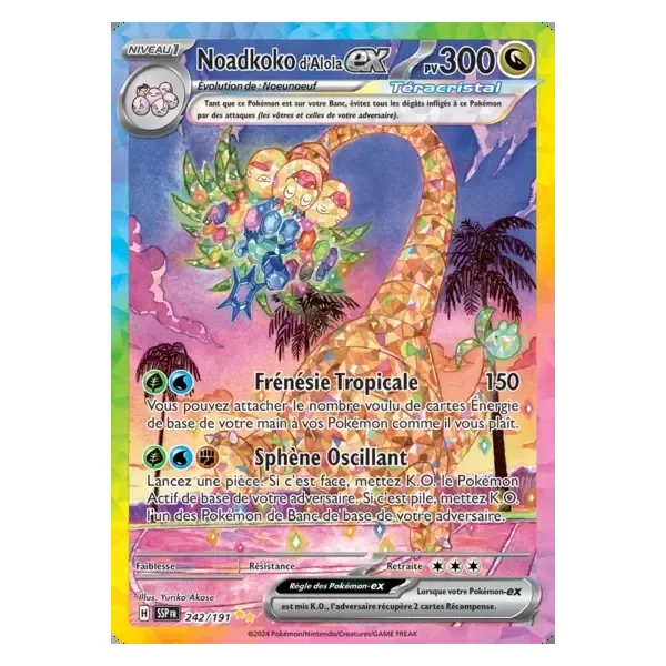 Découvrez Noadkoko d’Alola (ssp242), une carte Pokémon de l’extension Étincelles Déferlantes, provenant du bloc Écarlate & Violet. Idéale pour compléter votre collection, cette carte Alternative plaira autant aux collectionneurs qu’aux joueurs.