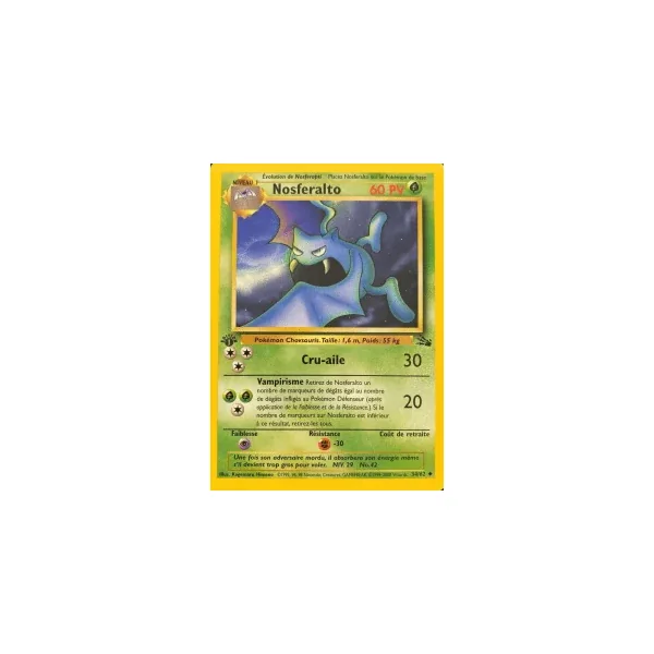 Découvrez Nosferalto (fo034), une carte Pokémon de l’extension Fossile, provenant du bloc Wizards. Idéale pour compléter votre collection, cette carte Peu Commune plaira autant aux collectionneurs qu’aux joueurs.