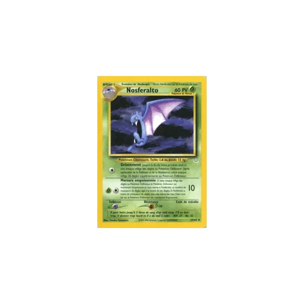 Découvrez Nosferalto (nr029), une carte Pokémon de l’extension Neo Revelation, provenant du bloc Wizards. Idéale pour compléter votre collection, cette carte Peu Commune plaira autant aux collectionneurs qu’aux joueurs.