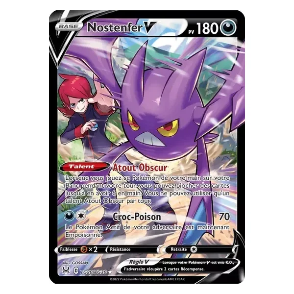Découvrez Nostenfer (lorTG20), une carte Pokémon de l’extension Origine Perdue, provenant du bloc Épée & Bouclier. Idéale pour compléter votre collection, cette carte Ultra Rare plaira autant aux collectionneurs qu’aux joueurs.