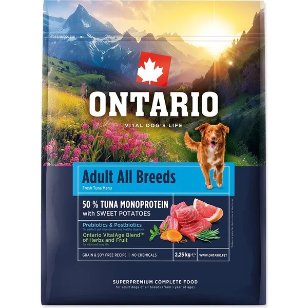 Nourriture Ontario Adult All Breeds Monoprotein Thon & Patates Douces 2,25kg