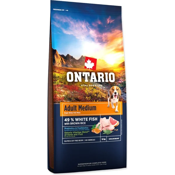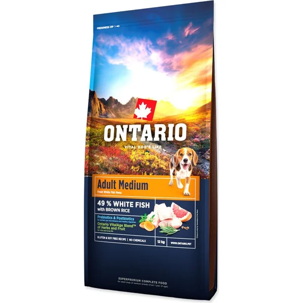 Nourriture Ontario Adult Medium Poisson & Riz Brun 12kg
