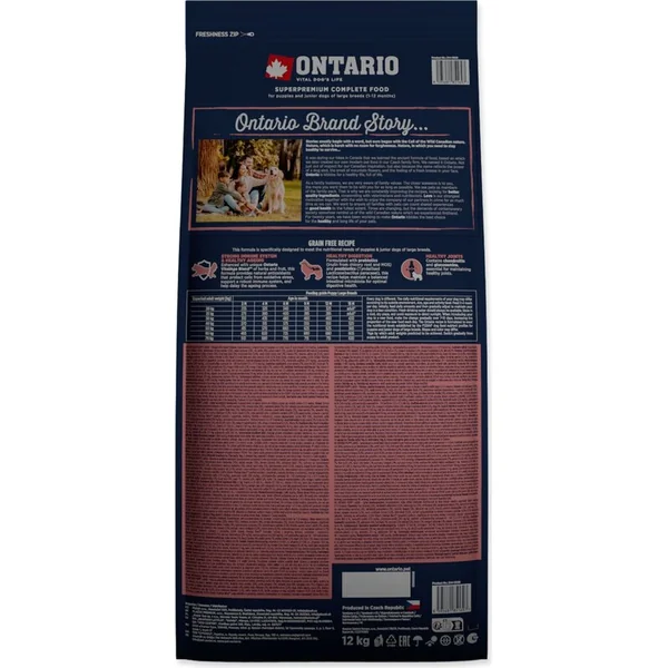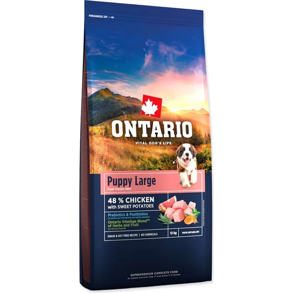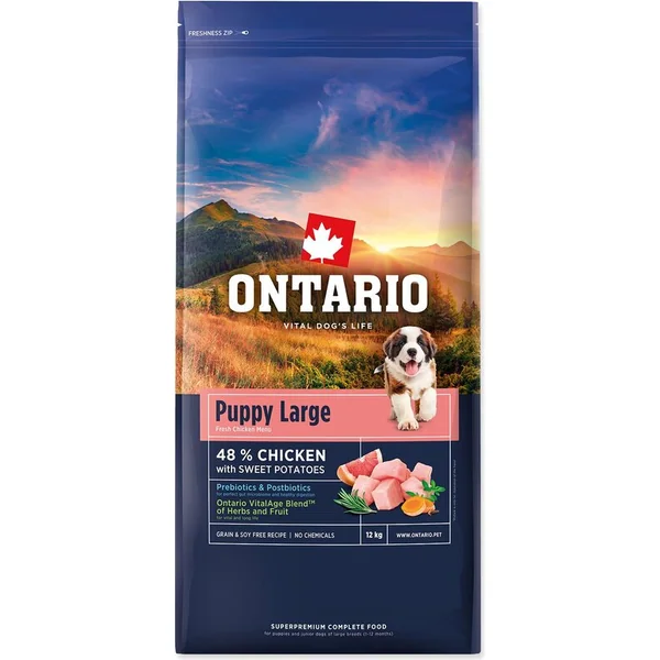 Nourriture Ontario Puppy & Junior Large Poulet & Patates Douces 12kg