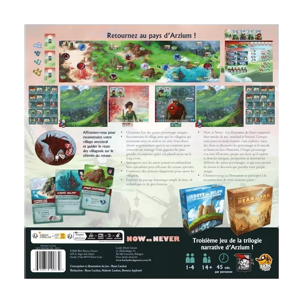 Now or Never – Les Royaumes du Passé comprend deux modes de jeu : standard et histoire. Lorsque vous jouez en mode histoire, vous explorez, faites des choix et découvrez les personnages et le monde en parcourant un livre d’histoires proposant différentes aventures en pays d’Arzium.