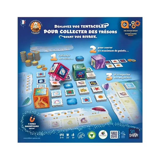 En cours de partie, marquez des points chaque fois que vous videz les faces de votre cube et, en fin de partie, remportez des majorités pour augmenter votre score.