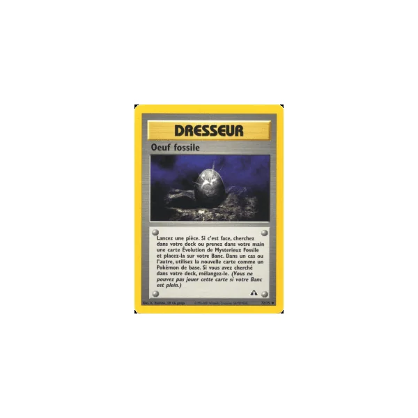 Découvrez Oeuf fossile (ndi072), une carte Pokémon de l’extension Neo Discovery, provenant du bloc Wizards. Idéale pour compléter votre collection, cette carte Peu Commune plaira autant aux collectionneurs qu’aux joueurs.