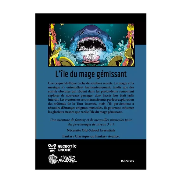 Old-School Essentials – l’Île du Mage Gémissant est une aventure pour le jeu de rôle Old-School Essentials, édité par 500 Nuances de Geek utilisant le système Basic/Expert.
