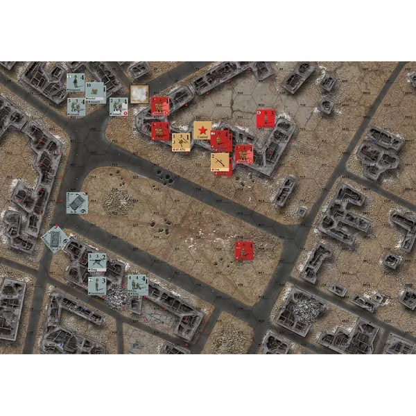 Old School Tactical Stalingrad Expansion contient une carte représentant un quartier de Stalingrad centré autour de la place rouge, une planche de pions avec de nouvelles unités (véhicules, guardes…) et 6 nouveaux scénarios.