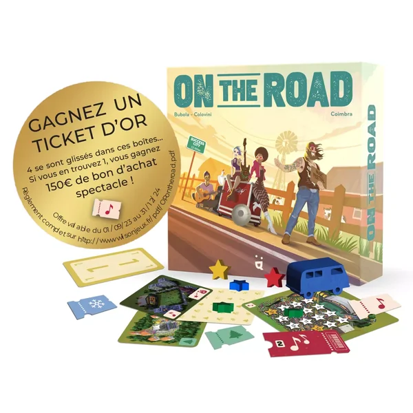 On The Road est un jeu de déplacement dans lequel vous incarnez un groupe de musique, jouable de 2 à 4 joueurs dès 8 ans pour des parties de 30 minutes. Edité par Helvetiq.