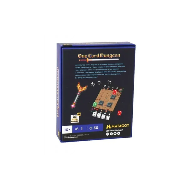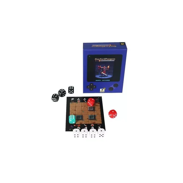 Dans One Card Dungeon, l’aventurier et les monstres sont tous deux représentés sur la carte par des dés, la valeur en haut indiquant leur état de santé actuel.