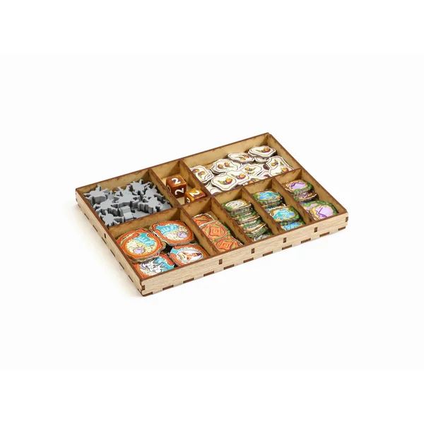 L’insert est livré assemblé et prêt à l’emploi. Il s’insère dans la boîte de base du jeu et améliorera grandement les temps de préparation et de rangement. Gardez vos cartes, jetons et meeples organisés dans la boîte et sur la table. Prend en charge les sleeves (jusqu’à 100 microns).