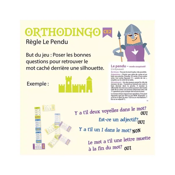 Orthodingo CE2 contient : règles de jeu et 100 cartes.