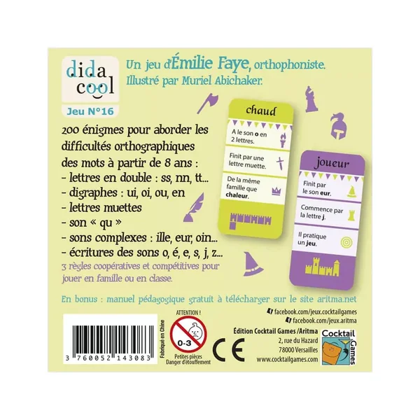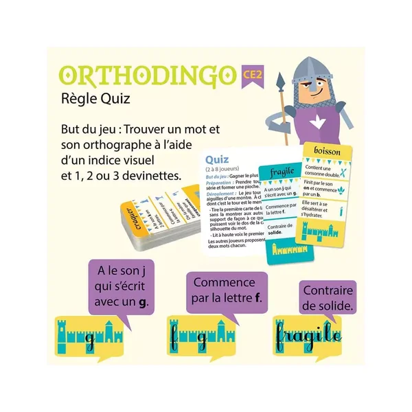 Orthodingo CE2 est un jeu de société éducatif pour enfant jouable de 2 à 8 joueurs, dès 8 ans pour des parties d’environ 10 minutes, édité par Aritma.