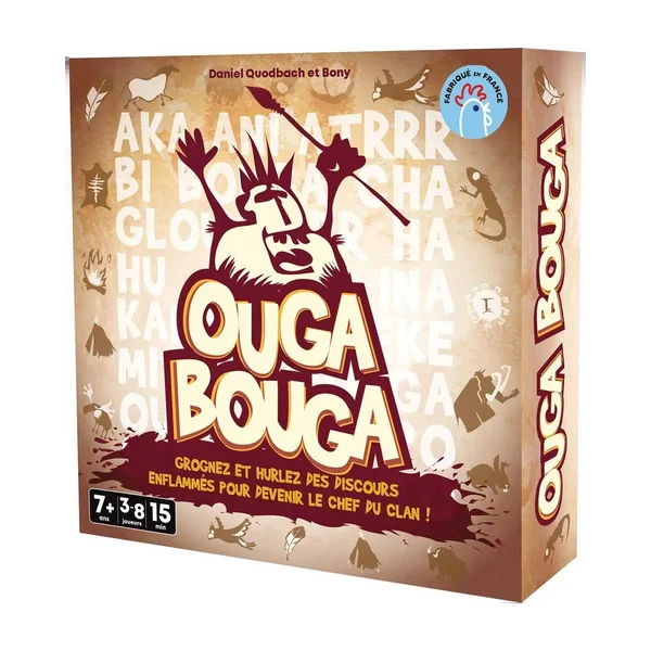 Ouga Bouga est un jeu d’ambiance et de mémoire, de 3 à 8 joueurs, dès 7 ans, pour des parties de 15 minutes, édité par Cocktail Games . Bombez le torse, prenez une voix caverneuse et préparez-vous à répéter une succession de sons qui pourront être ponctués, suivant les cartes, par des applaudissements et des coups de poing sur la table…