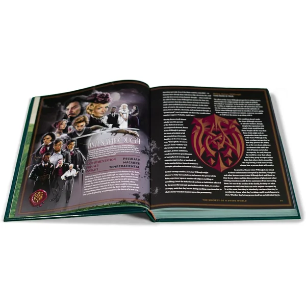 – Des systèmes de création de personnages, des règles de jeu, une liste de régions et une galerie d’alliés et d’antagonistes.