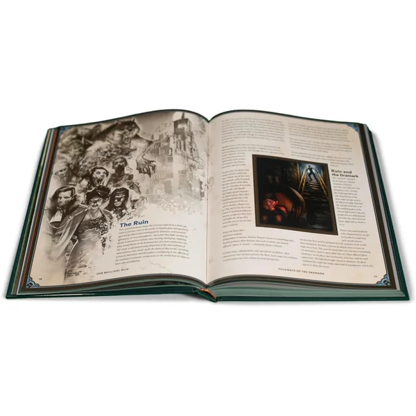 – Un guide du monde du Dramark, des merveilles de l’âge d’or et des horreurs de la Ruine qu’il renferme.