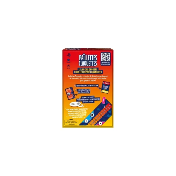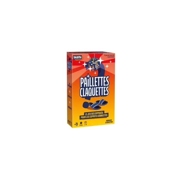 Paillettes Claquettes est un jeu de société d’ambiance jouable de 2 à 10 joueurs, dès 14 ans pour des parties d’environ 20 minutes, édité par Tailemi.