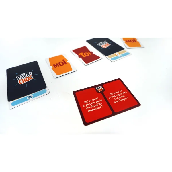 Pour répondre, les joueurs vont simplement se comparer à leurs voisins de table et poser des cartes TOI ou MOI. Ambiance immédiate et surprises garanties lors des révélations !
