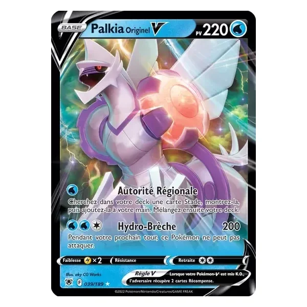 Découvrez Palkia Originel (asr039), une carte Pokémon de l’extension Astres Radieux, provenant du bloc Épée & Bouclier. Idéale pour compléter votre collection, cette carte Ultra Rare plaira autant aux collectionneurs qu’aux joueurs.