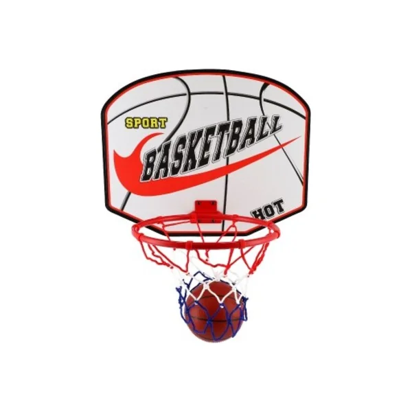 Panier de basket bois/métal/filet/ballon avec pompe