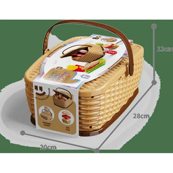 Tout est rangé dans un pratique panier de pique-nique avec une poignée, ce qui permet aux enfants de le transporter facilement où qu’ils aillent.