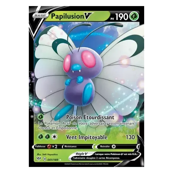 Découvrez Papilusion (daa001), une carte Pokémon de l’extension Ténèbres Embrasées, provenant du bloc Épée & Bouclier. Idéale pour compléter votre collection, cette carte Ultra Rare plaira autant aux collectionneurs qu’aux joueurs.