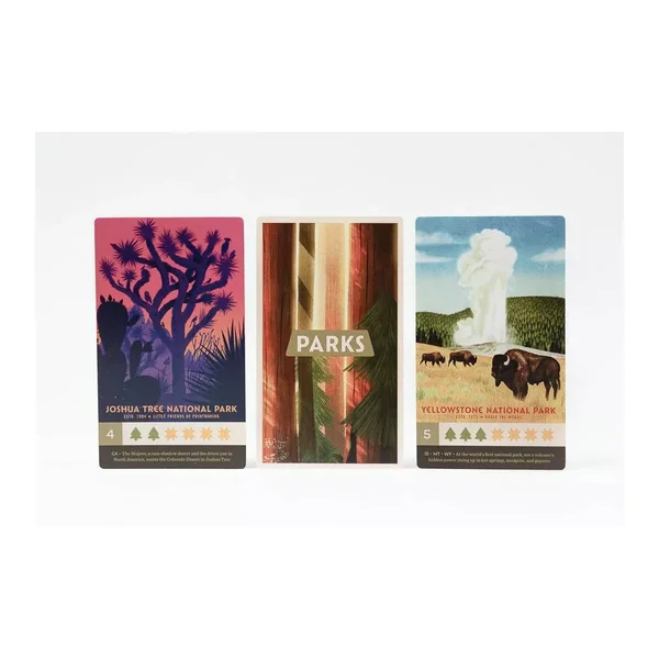 Jouable dès 10 ans pour des parties jusqu’à 5 joueurs, d’une durée d’environ 45 min, Parks vous fait voyager à travers les parcs nationaux Américains. Vous y contrôlez votre groupe de randonneur qui devront collecter différentes ressources (des souvenirs), faire des photos et visiter les plus beaux parcs pour espérer emporter la victoire.