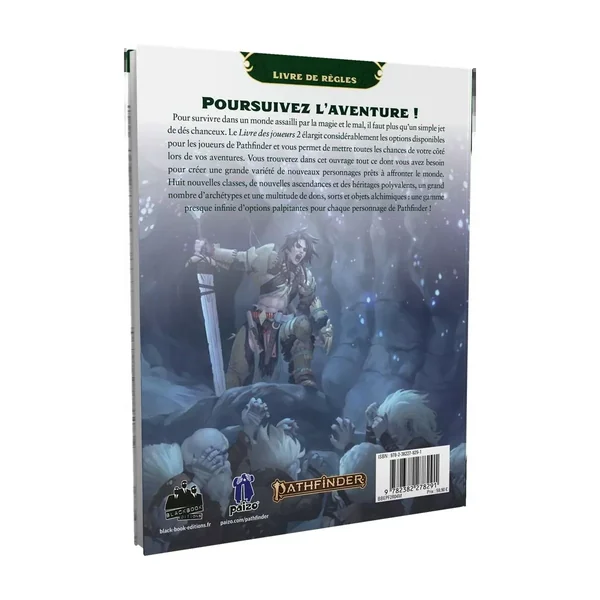Le Livre du Joueur 2 pour Pathfinder est le quatrième livre de règles de base pour le jeu de rôle Pathfinder Deuxième Édition entièrement remasterisé ! Ces règles sont compatibles avec les précédents livres de règles de Pathfinder Deuxième Édition, intégrant des errata complets et des mises à jour de règles et certains des meilleurs contenus additionnels des livres ultérieurs dans de nouveaux volumes plus faciles d’accès avec de nouvelles présentations inspirées par des années de commentaires de joueurs.