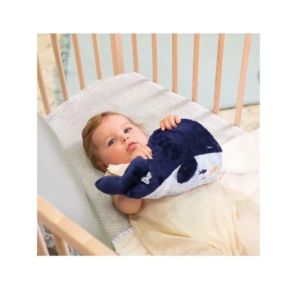 La peluche bien-être en forme de baleine est la peluche idéale pour soulager bébé de ses petits maux.