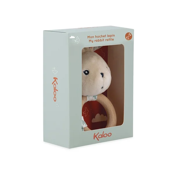 Grâce à son anneau en bois lisse, bébé pourra attraper facilement ce hochet lapin tout doux de 12cm.