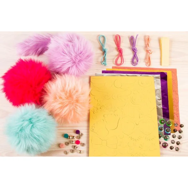 Fabrique des personnages pom pom adorables et en peluche avec un kit de fabrication de porte-clés duveteux.