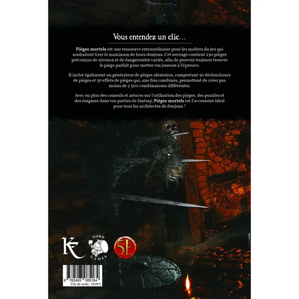 Quelle est la meilleure façon d’utiliser les pièges dans vos aventures ? Quels pièges choisir ? Pourquoi devriez-vous les utiliser ? Quand le faire ? Et comment préserver leur intérêt ?Voilà bien des questions auxquelles Pièges mortels vous apportera la réponse.