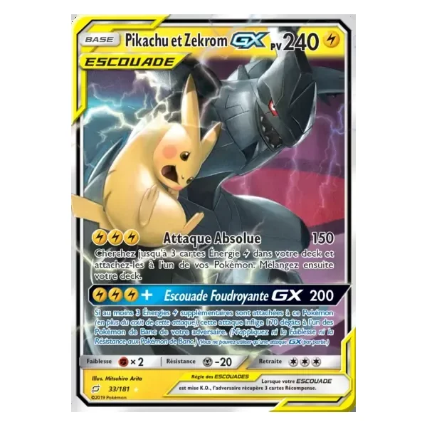 Découvrez Pikachu & Zekrom (teu033), une carte Pokémon de l’extension Duo de Choc, provenant du bloc Soleil & Lune. Idéale pour compléter votre collection, cette carte Ultra Rare plaira autant aux collectionneurs qu’aux joueurs.