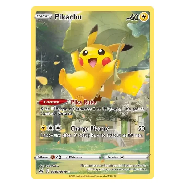 Découvrez Pikachu (crzGG30), une carte Pokémon de l’extension Zénith Suprême, provenant du bloc Épée & Bouclier. Idéale pour compléter votre collection, cette carte Holo Rare plaira autant aux collectionneurs qu’aux joueurs.