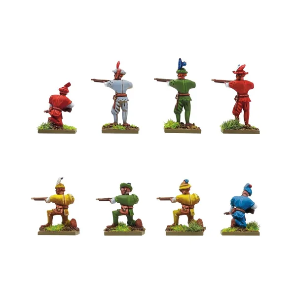 Ce blister contient 8 arquebusiers suisses, parfaits pour être incorporés dans vos unités de piquiers suisses ou pour être déployés en tant qu’unité autonome.
