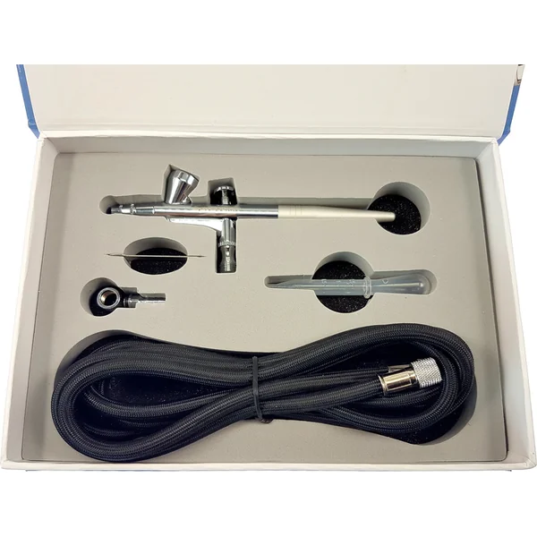 Le pistolet à air Spraycraft SP25 est un pistolet de pulvérisation de haute qualité en métal, à double action, qui libère de l’air en appuyant sur la gâchette et libère une quantité de peinture en tirant vers l’arrière. Le réservoir de 2 ml est situé en haut, et la buse a un diamètre de 0,3 mm. Pour l’art, les loisirs, l’artisanat et la graphisme. La pression de fonctionnement est de 15 à 50 PSI (1,0 à 3,5 bar). Le tuyau est équipé d’écrous à vis avec un filetage de 1/8″.