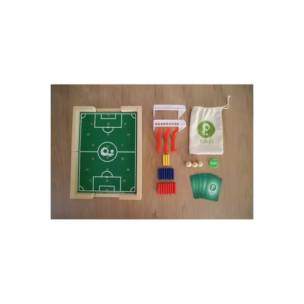 Plakks est un jeu de football de type pichenette. Les joueurs se renvoient la balle à coup de pichenette jusqu’à ce qu’un but soit marqué. Le joueur ayant encaissé le but doit retirer l’un de ses joueurs puis reprend le match jusqu’à ce que l’un des joueurs ne possède plus de joueurs sur le terrain.