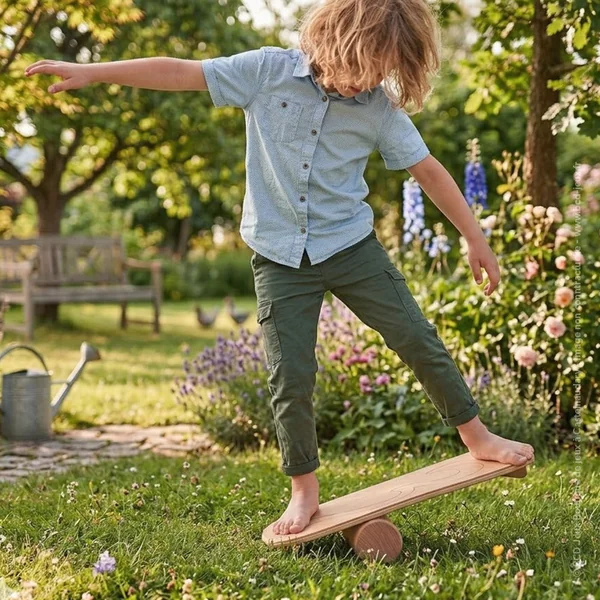 La planche d’équilibre en bois de haute qualité est l’accessoire idéal pour développer l’équilibre et la coordination. Le revêtement en liège antidérapant permet une