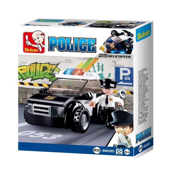 La police est indispensable pour la société et ne doit pas manquer à Sluban. Cette voiture de patrouille de la série « Police » te seras indispensable pour sauver et rassurer la population de ton village, des voleurs, des infractions ou bien des désaccords entre voisins. Alors construit vite ton véhicule de 88 pièces et d’une mini-figurine ! Avec les autres véhicules de la série Police, ces héros du quotidien protègeront sans relâche les rues de Sluban. Les briques Sluban sont compatibles avec tous les blocs de construction déjà connus sur le marché.