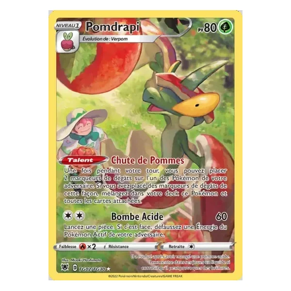Découvrez Pomdrapi (asrTG02), une carte Pokémon de l’extension Astres Radieux, provenant du bloc Épée & Bouclier. Idéale pour compléter votre collection, cette carte Holo Rare plaira autant aux collectionneurs qu’aux joueurs.