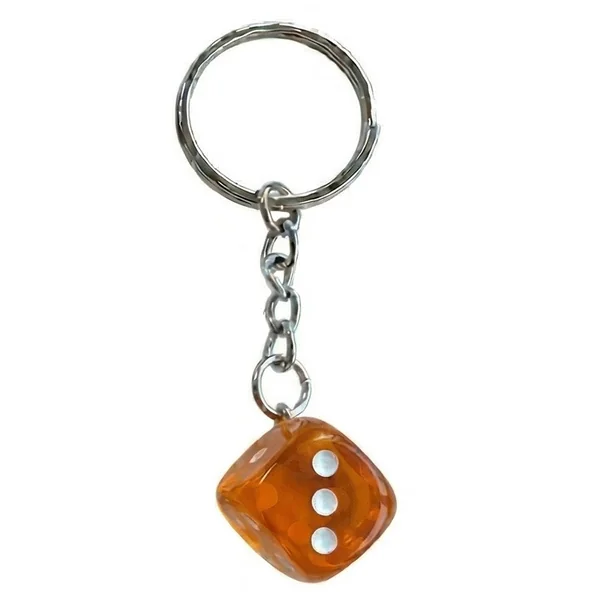 Porte-clé orné d’un dé de couleur orange.