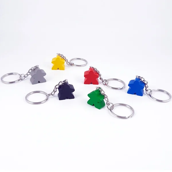 Porte-clé orné d’un meeple de couleur violet.