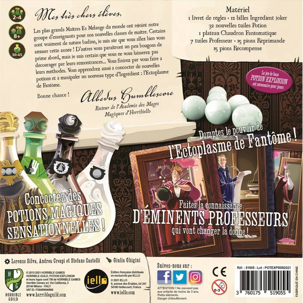 Les plus grands Maîtres des Mélange du monde ont rejoint notre groupe d’enseignants pour nos nouvelles master class. Certains sont vraiment de nature badine, je suis sûr que vous allez bien vous amuser cette année ! D’autres vous paraîtront un peu bougons de prime abord, mais je suis certain que vous ne vous laisserez pas décourager par leurs remontrances… Vous finirez par vous faire à leurs méthodes. Vous apprendrez aussi à concocter de nouvelles potions et à manipuler un nouveau type d’ingrédient : l’ectoplasme de fantôme.