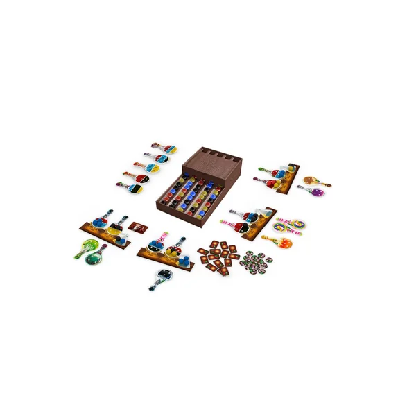 Pour préparer vos Potions, prenez une bille Ingrédient dans le Distributeur à chaque tour, et provoquez des collisions entre des Ingrédients de même couleur pour les faire exploser (et les prendre au passage) ! Plus les explosions sont violentes, plus vous préparez rapidement vos Potions ! La formule d’une Potion comporte entre 4 et 7 Ingrédients représentés par des trous dans sa tuile. Posez les billes des couleurs demandées sur les trous des tuiles Potion. Une fois l’ensemble des trous comblés, la Potion est terminée. Chaque Potion vaut un certain nombre de points, qui dépend du nombre d’Ingrédients nécessaires pour la terminer et du pouvoir magique qu’elle confère. Quand un joueur finit 3 Potions de même pouvoir ou 5 Potions de 5 pouvoirs différents, il reçoit un jeton Compétence, qui vaut 4 points. La fin de la partie est déclenchée quand tous les jetons Compétence de la pile ont été attribués.